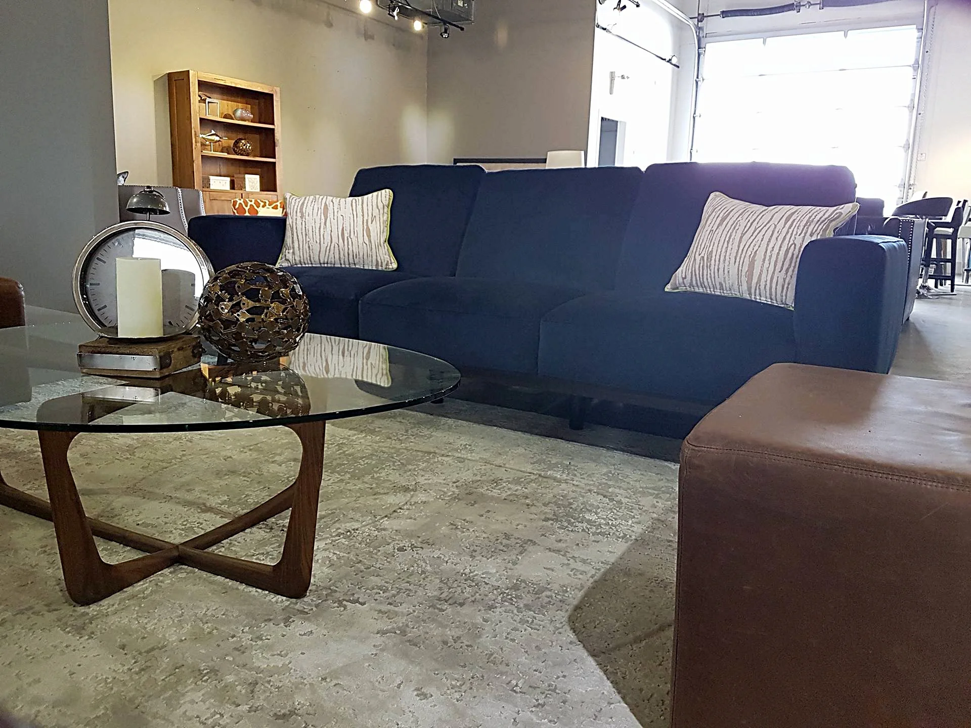And speaking of blue, have you heard that navy is the new black? Whether you’re incorporating a new navy armchair into your design plan or adding splashes of navy in your artwork, this deep blue is a modern twist with a traditional feel! And navy never goes out of style! We recently brought in this luxurious navy velvet sofa into our showroom, and yes, it’s available for purchase as well as staging!