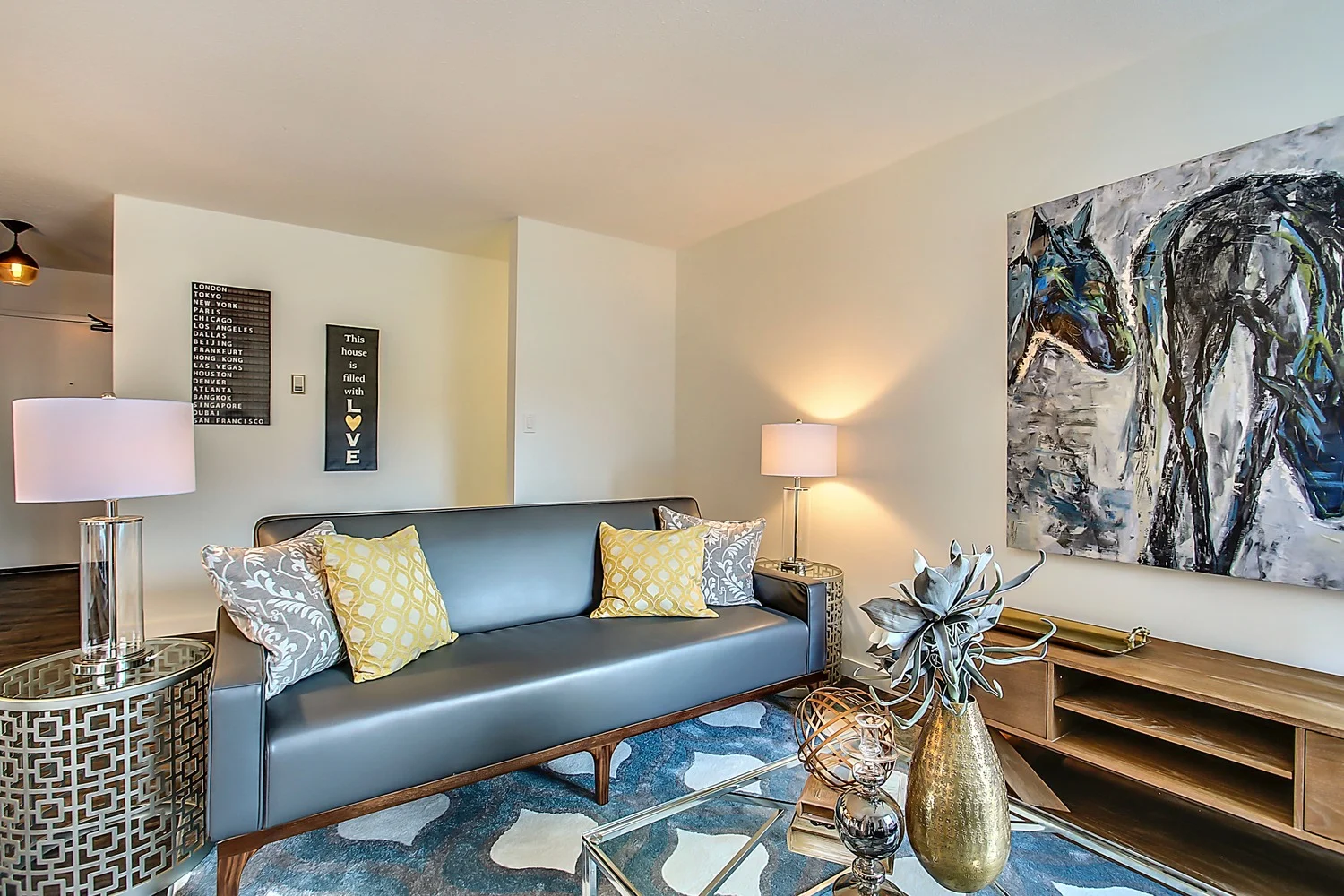 We also offer partial staging for currently occupied homes. One of our design consultants would typically spend one to two hours walking through the home with the client and their realtor, noting suggestions such as editing/decluttering, furniture placement and art/décor adjustments. We then present a written report for the customer with suggestions to increase the salability of their home. We often do a partial stage where we bring in premier furniture, artwork, and décor that highlight the home's selling features. This blend of homeowner furnishings plus Dezin Group inventory is an excellent way to increase salability of your home.